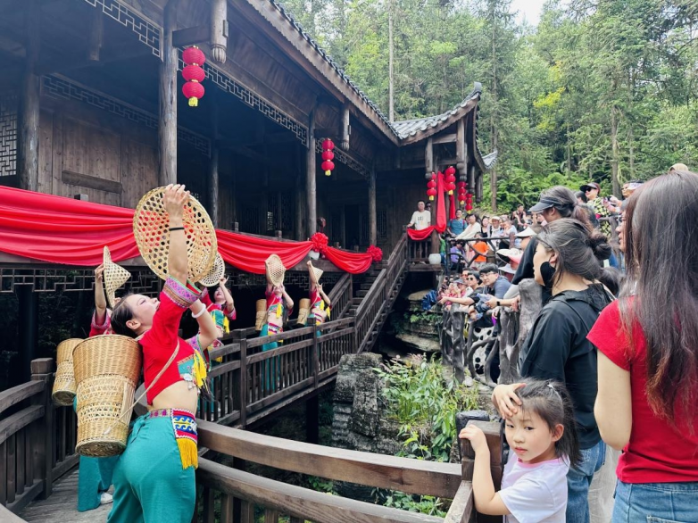 熱情洋溢的迎客攔門酒,大型情景劇《戀上梭布埡 愛(ài)在女兒會(huì)》讓遠(yuǎn)道而來(lái)的游客感受到了土家兒女熱情好客的情誼和豐富多彩的民俗文化。