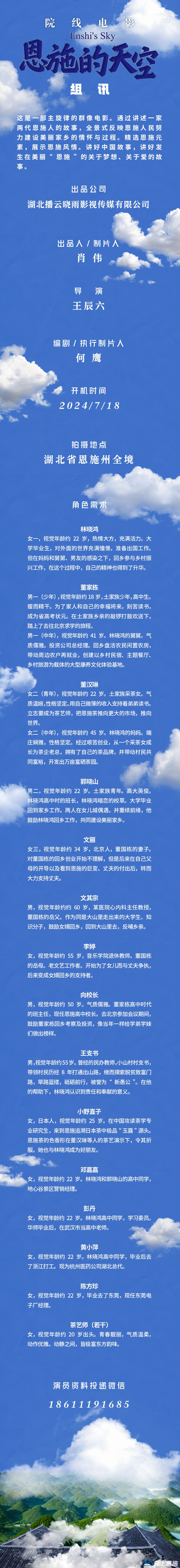 電影《恩施的天空》是一部主旋律的群像電影,通過精選恩施元素,展示恩施風情,電影講述了一家兩代恩施人的故事,全景式反映恩施人民努力建設(shè)美麗家鄉(xiāng)的情懷與過程。