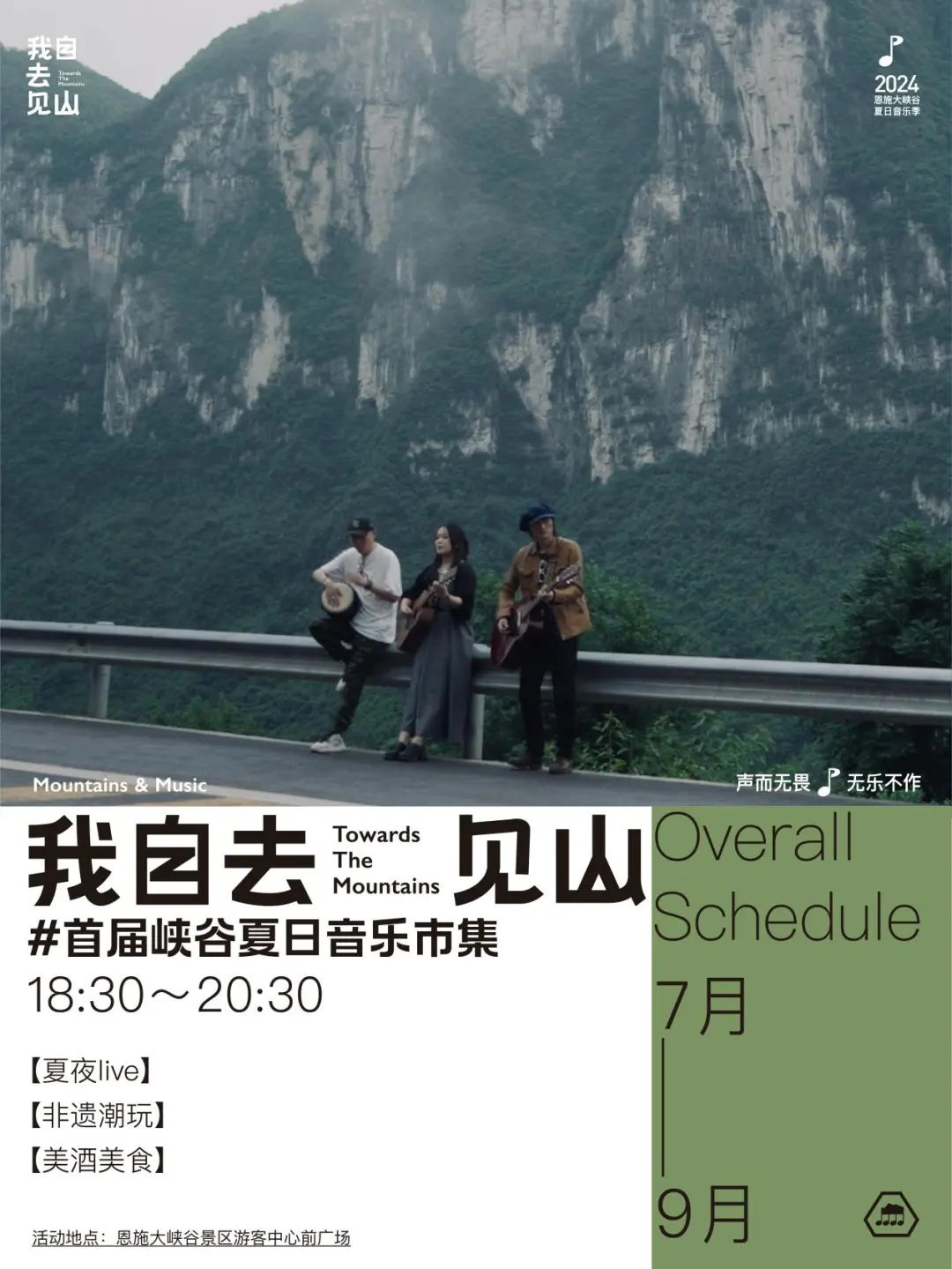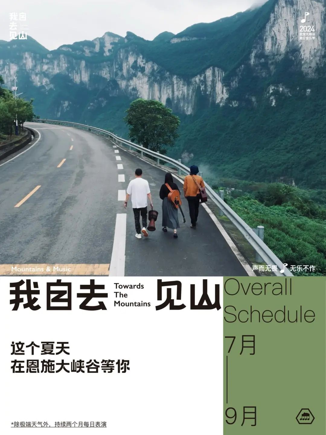 7月-9月,數(shù)十位音樂人持續(xù)帶來2024恩施大峽谷夏日音樂季,戶外自然與音樂、街頭藝術(shù)等文化元素相互融合。在匯聚新銳音樂力量的恩施大峽谷,讓我們擁抱音樂的生命力與松弛感,樂手和游客們縱情歌舞,用音樂傳遞這個盛夏的涼爽與快樂!