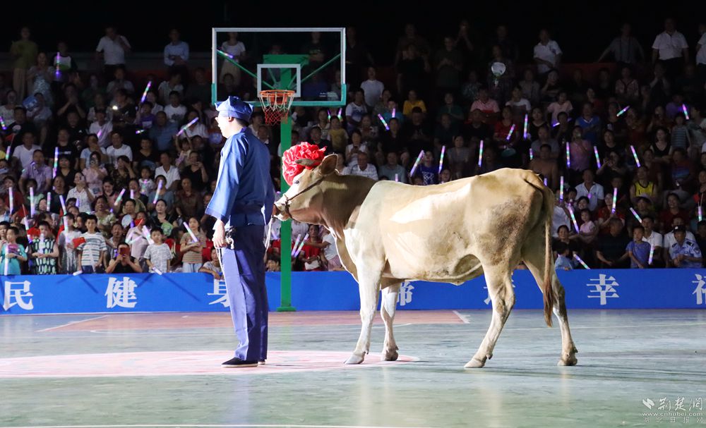 19時30分許,開幕式開始,聲聲震天的威風(fēng)鑼鼓、剛勁有力的武術(shù)表演、青春動感的健身舞蹈以及活力十足的歌曲串燒,一次次引來現(xiàn)場的歡呼喝彩。當(dāng)工作人員牽著“冠軍?!边M(jìn)入場地那一刻,現(xiàn)場的熱烈氛圍再次被引向高潮。