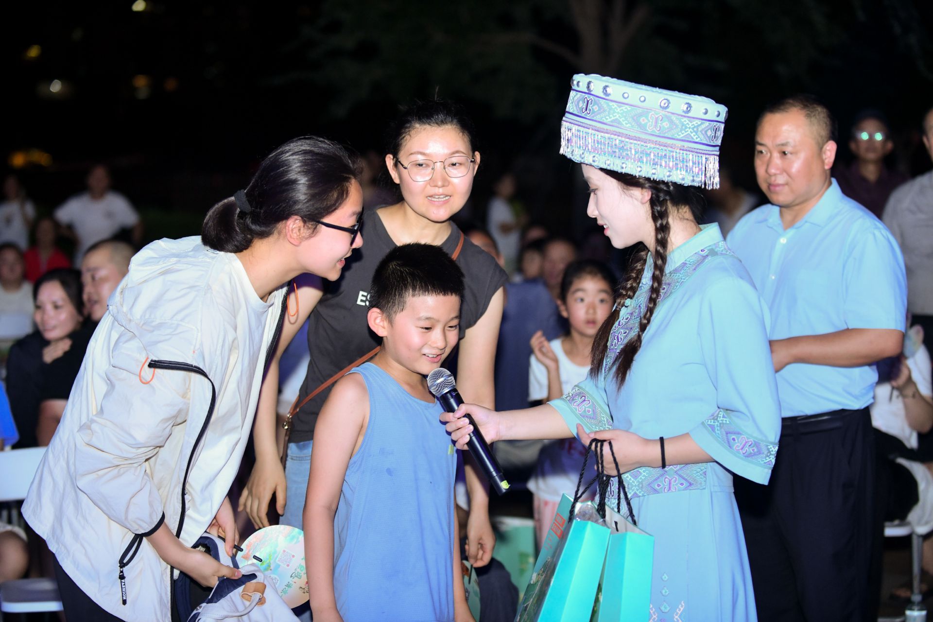 連日晴熱,武漢的夏夜,仍暑氣逼人,但當晚的西北湖廣場,現(xiàn)場觀眾的熱情絲毫不減。推介會現(xiàn)場,推介官結合音樂、舞蹈、表演等多種藝術形式,用情景劇的方式沉浸式推介,將宣恩的玩樂攻略、民族文化、節(jié)慶賽事等文旅資源,生動直觀地呈現(xiàn)在觀眾面前,帶給觀眾身臨其境之感。《宣恩耍耍》《左右連廂舞豐年》《我是土家人》等多個少數(shù)民族特色的歌舞節(jié)目輪番上演,獨特的民族風情讓觀眾提前感受到了宣恩的浪漫與熱情。