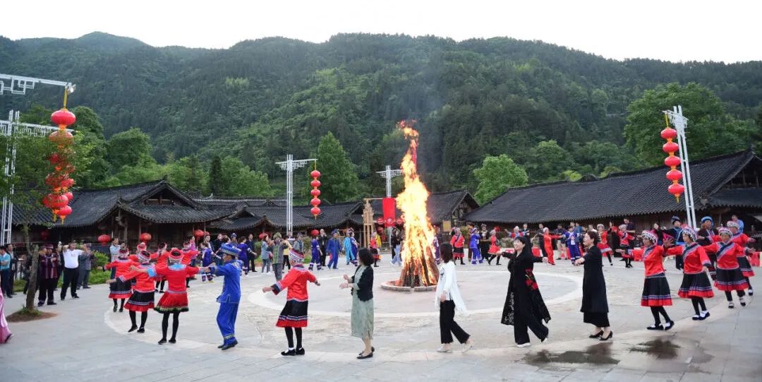 清江河畔,群山如黛,好一幅美麗的山水畫卷;吊腳樓前,院壩稻場,好一場熱鬧的篝火晚會(huì)。