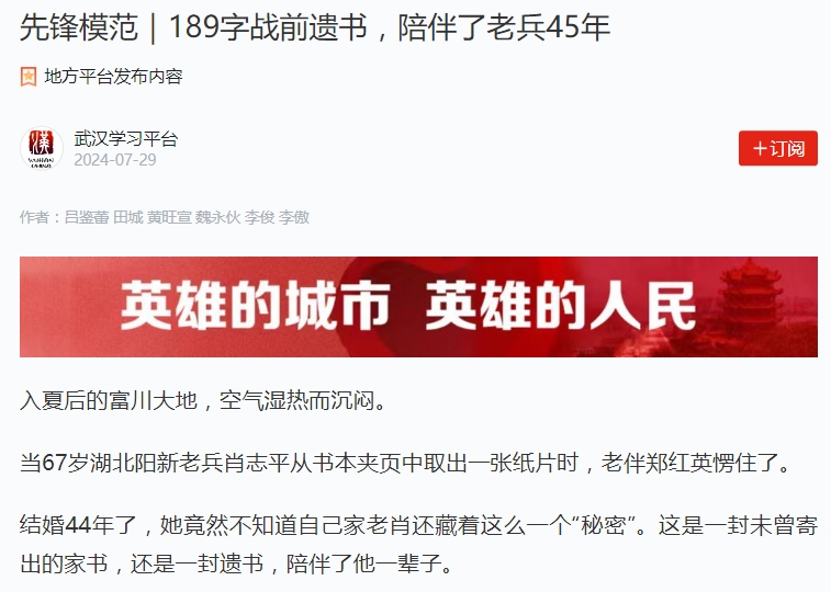 連日來,《189字戰(zhàn)前遺書,陪伴了老兵45年》的故事也在不斷升溫,獲得省內(nèi)外多家媒體密集關(guān)注。