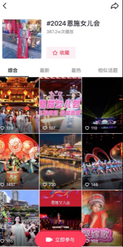 微博話題#2024恩施女兒會浪漫開幕#登陸微博熱搜榜,位居同城話題榜第二名,話題瀏覽量127萬+;恩施籍影視演員、歌手蘭西雅拍攝主題宣傳片,助力恩施女兒會#歡迎大家來恩施女兒會#沖上抖音同城熱榜榜一,話題瀏覽量達(dá)522萬,充分調(diào)動話題熱度,吸引更多游客前來參與。