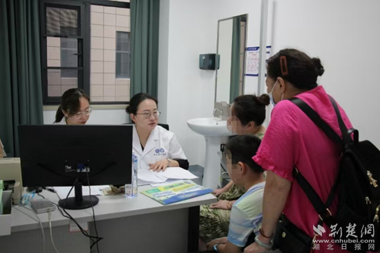 在診室坐診的便是武漢協(xié)和醫(yī)院金銀湖院區(qū)兒科負(fù)責(zé)人蔡馥丞副教授和黃石市第二醫(yī)院兒科副主任張芷銘。在診室門前,前來就診人員排起長隊,許多家長眉頭緊皺,臉上寫著同一個疑問:我的孩子怎么了?