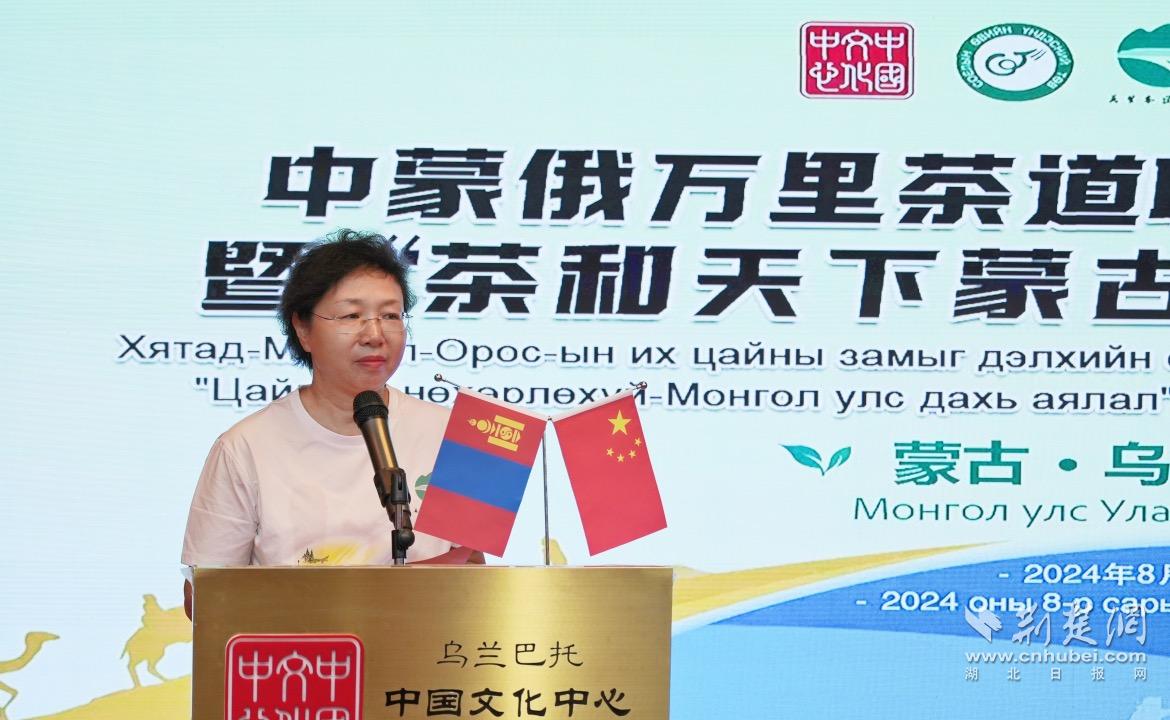 湖北省文物事業(yè)發(fā)展中心二級巡視員晏妮表示,萬里茶道因茶而生、因茶而興、因茶而融,希望中蒙俄三國在加強萬里茶道文化遺產(chǎn)保護與聯(lián)合申遺道路上深化交流合作,以萬里茶道為紐帶,以茶為媒,增進民心相通、文化交流以及沿線城市間經(jīng)濟交往,進一步傳承中蒙傳統(tǒng)友誼。