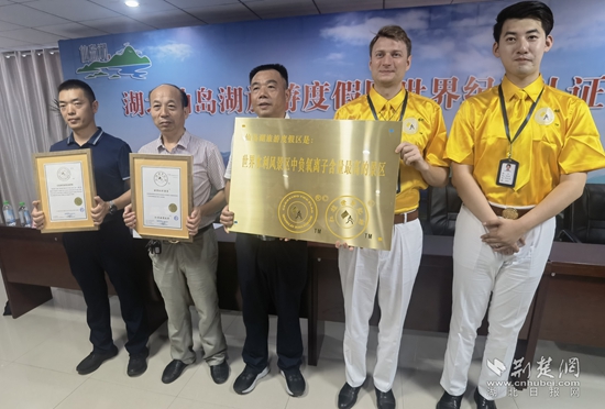 現(xiàn)場(chǎng)頒發(fā)“世界水利風(fēng)景區(qū)中負(fù)氧離子含量最高的景區(qū)”紀(jì)錄證書該鎮(zhèn)新添一項(xiàng)世界級(jí)榮譽(yù)