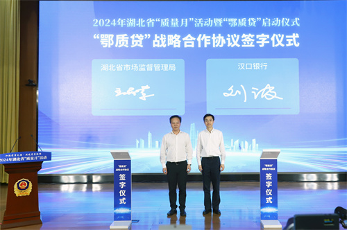 儀式上,湖北省市場(chǎng)監(jiān)督管理局黨組書(shū)記、局長(zhǎng)王世榮宣布2024年湖北省質(zhì)量月活動(dòng)暨“鄂質(zhì)貸”正式啟動(dòng),湖北省市場(chǎng)監(jiān)督管理局黨組成員、副局長(zhǎng)王勤發(fā)布《2023湖北質(zhì)量報(bào)告》白皮書(shū)(以下簡(jiǎn)稱“白皮書(shū)”),省市場(chǎng)監(jiān)管局與漢口銀行簽訂了“鄂質(zhì)貸”戰(zhàn)略合作協(xié)議。