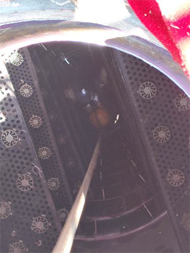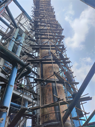 檢驗當天,近40度的高溫,檢驗專班兵分兩組,率先對約十層樓高的尿素合成塔進行全面“體檢”。負責設備外部的檢驗小組沿著竹跳板,穿梭在腳手架間,逐層攀爬,對設備進行宏觀檢驗、壁厚測定和磁粉檢測。另一組檢驗人員則來到塔頂,向下深入設備內部開展檢驗。塔內空間狹窄封閉,即使采用強制通風措施,塔內溫度仍有50多度。由于相鄰塔盤之間只有1米左右,檢驗人員只能長時間處于半蹲狀態(tài)?!懊ν炅?,才感覺腰和腿都要不是自己的了?!睓z驗人員張永華笑著說道。