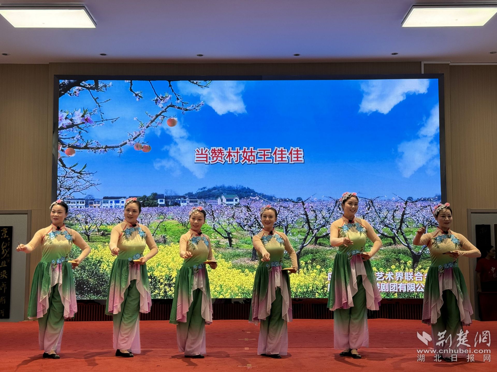 在湖北小曲《改彩禮》中,6名表演者手持碟兒翩然走出,通過湖北小曲特有的藝術(shù)表演形式,從彩禮婚嫁等群眾身邊事入手,倡導(dǎo)文明新風(fēng)。