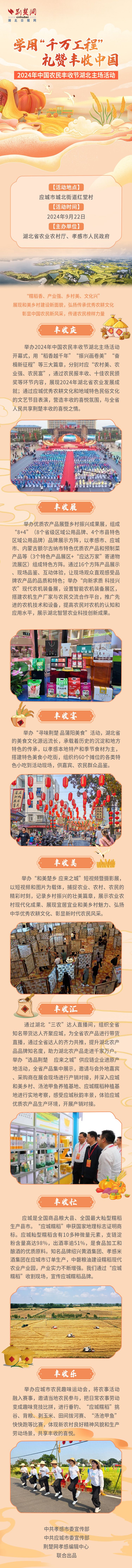 荊楚網(wǎng)(湖北日報網(wǎng))訊(記者黃菲 通訊員李林 馮璇 李夢婷)9月14日下午,從孝感市召開的新聞發(fā)布會上獲悉,2024年中國農(nóng)民豐收節(jié)湖北主場活動將于9月22日在應(yīng)城市城北街道紅堂村舉行。