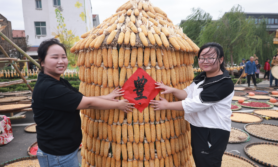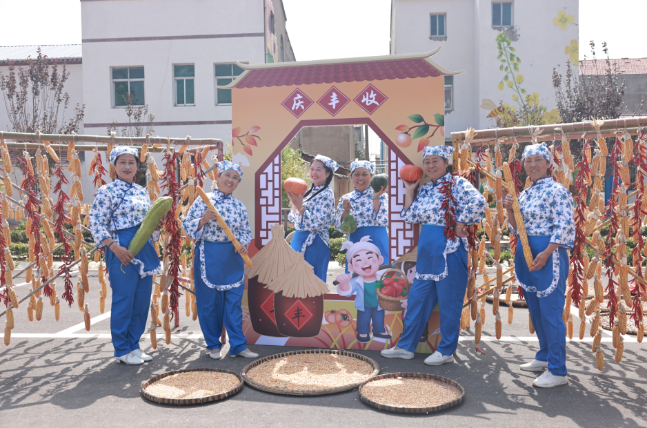 在該鎮(zhèn)盛砦村花海停車場村民們紛紛將自家種的玉米、向日葵、棉花、黃豆、花生、芝麻、南瓜、辣椒、老葫蘆、老絲瓜等農(nóng)產(chǎn)品進行晾曬,創(chuàng)意的卡通圖案,吸引了不少游客前來觀光打卡。