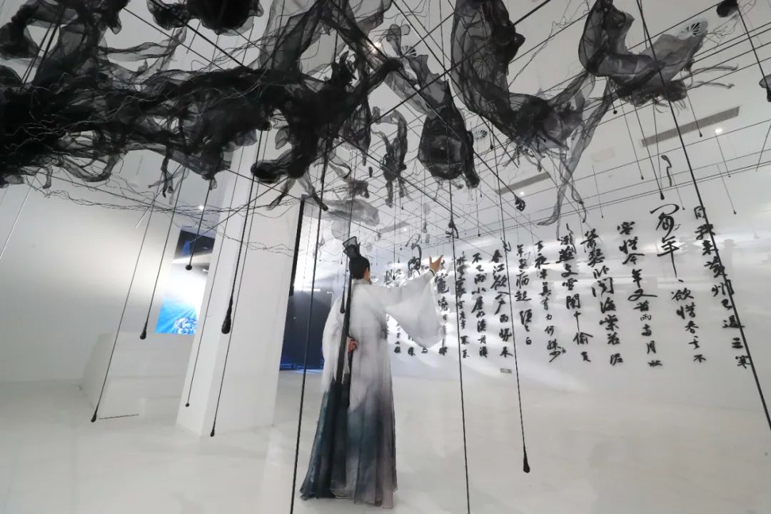 宋人愛書。宋人字里求韻,揮就一代新風。入境時一個巨大的潑墨藝術(shù)造型撲面而來,大環(huán)繞畫幅在四周不斷變幻震撼你的視覺。