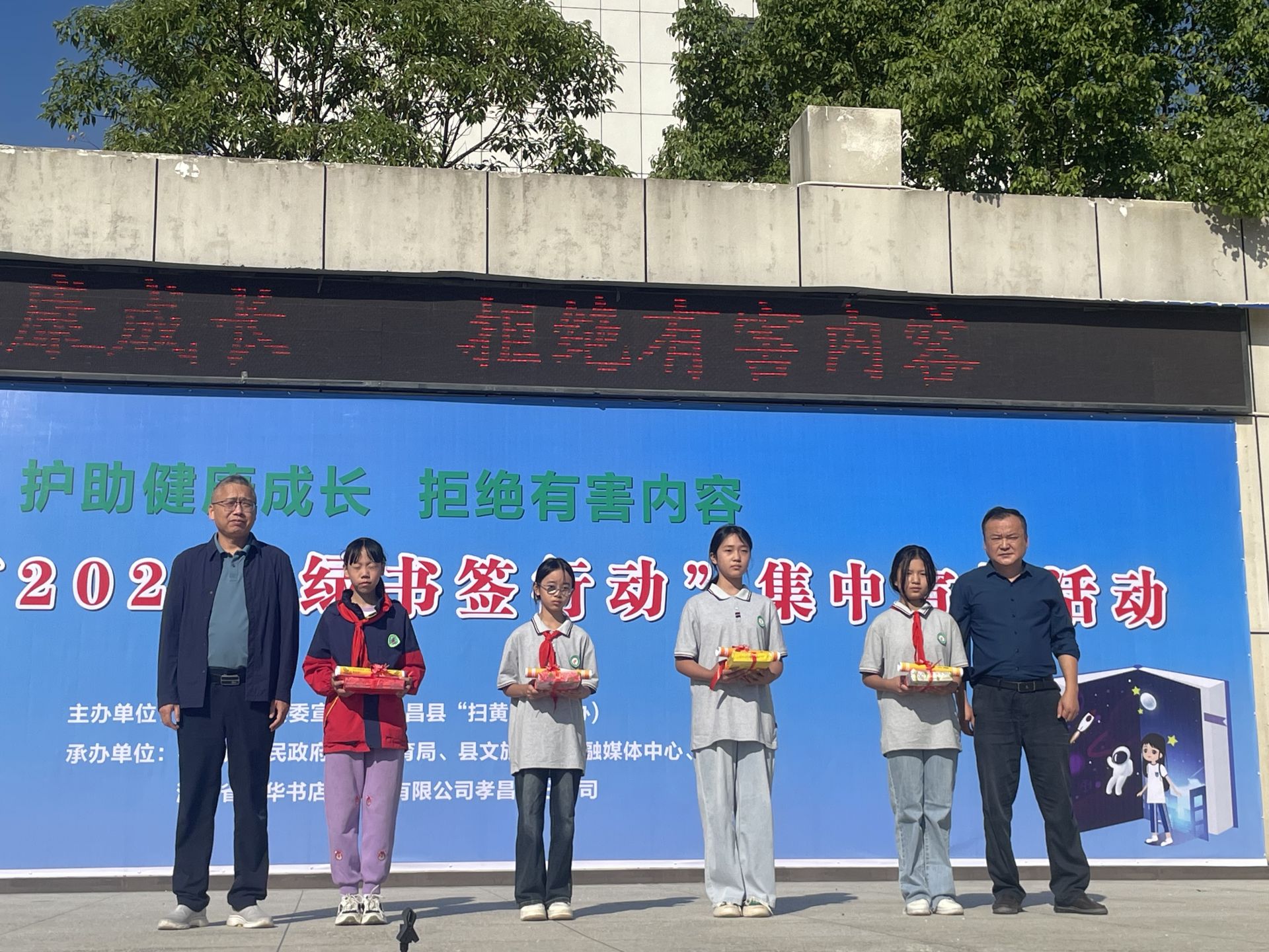 活動(dòng)現(xiàn)場(chǎng),學(xué)生代表宣讀了“拒絕有害內(nèi)容”倡議書,號(hào)召全縣廣大青少年綠色閱讀、健康上網(wǎng)、知法守法。湖北省“掃黃打非”先進(jìn)個(gè)人季鐵軍圍繞工作實(shí)際,分享了“護(hù)苗”經(jīng)驗(yàn)。活動(dòng)現(xiàn)場(chǎng)作了防盜版知識(shí)培訓(xùn),并為縣澴西學(xué)校“綠書簽行動(dòng)”手抄報(bào)比賽一等獎(jiǎng)、二等獎(jiǎng)、三等獎(jiǎng)獲獎(jiǎng)?wù)哌M(jìn)行了頒獎(jiǎng)?;顒?dòng)最后,學(xué)生在“護(hù)苗2024·綠書簽行動(dòng)”展板上簽名,許下鄭重承諾,抵制非法有害出版物及信息。