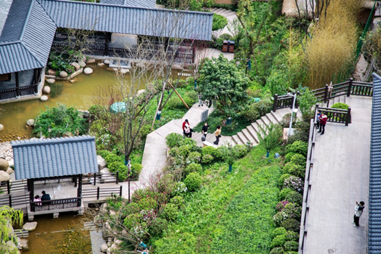 東坡花園占地面積17.2畝,以白居易《東坡種花二首》等詩詞為依據(jù),結(jié)合空間現(xiàn)狀,以原“東澗、東坡”為基礎(chǔ),新筑詩廊、東亭、東樓、慕白軒、白蘋橋、兼濟(jì)廊等景觀構(gòu)筑,以白居易在忠州所植桃、柳、荔枝、山石榴、木蓮等12種植物為主要綠植品種,營造樂天東坡種花、東亭閑望、東樓宴賓、東坡放懷等詩意景觀,為市民締造遠(yuǎn)離城市喧鬧且近似自然山林的休憩空間。