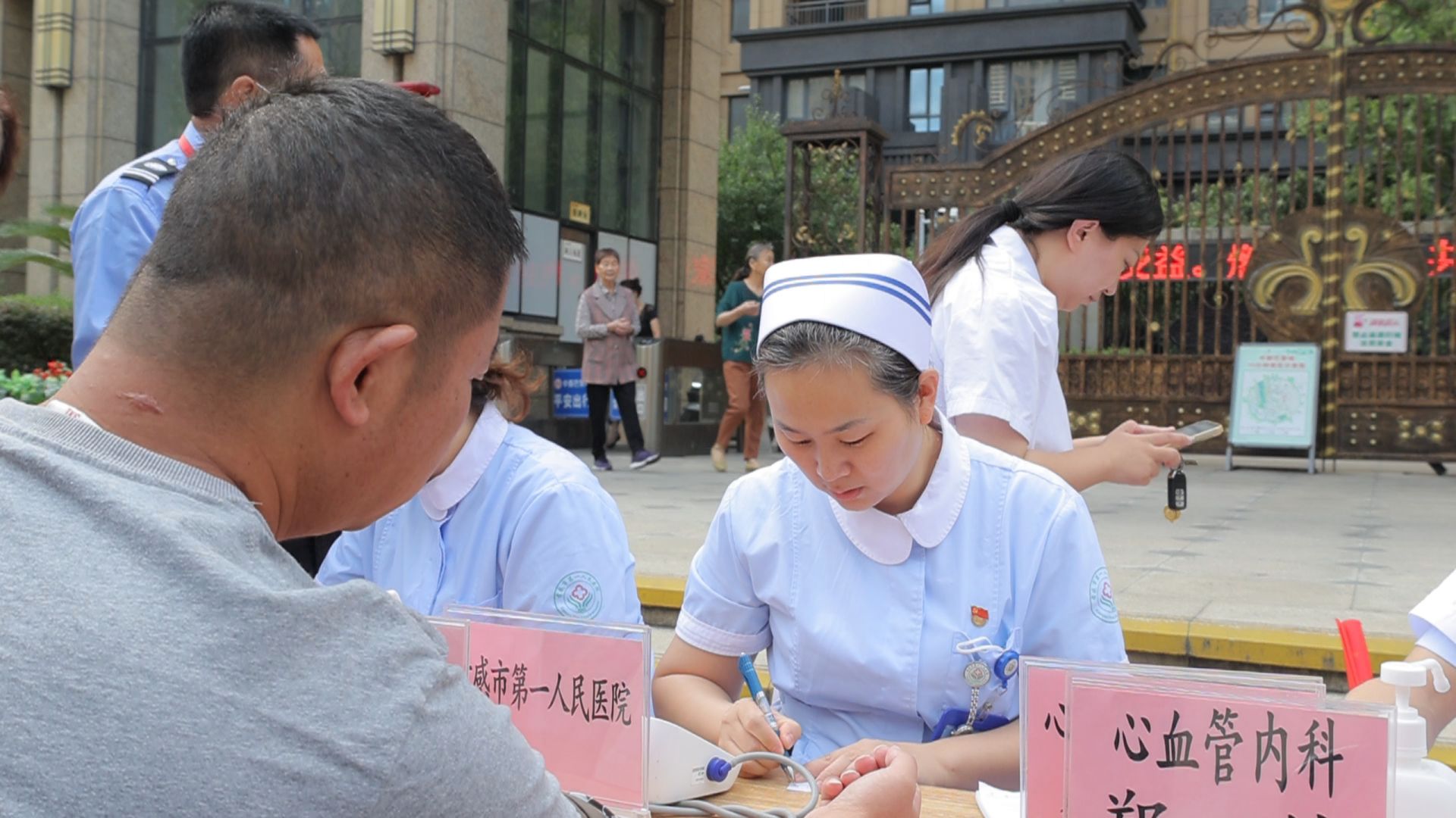義診現場,6位來自金心團隊的醫(yī)護人員免費為居民們測量血糖、血壓,測心電圖,武漢亞心醫(yī)院駐孝感市第一人民醫(yī)院的閔志勇教授也在現場為居民朋友提供心血管健康咨詢等服務?!跋裎覀兤綍r上下班忙工作,對自己身體狀況啊比較忽視,今天在小區(qū)門口就有一醫(yī)院的醫(yī)生免費測血糖血壓,了解一下自身健康狀況,真的蠻方便我們老百姓,希望能經常舉辦這樣的義診?。 鼻皝頊y血糖的李女士感慨道。