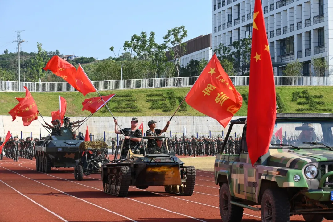 匯演現(xiàn)場氣氛莊嚴(yán)而熱烈,隨著多發(fā)迫擊炮、火箭筒、定向筒發(fā)射入空后,2024級學(xué)生軍訓(xùn)匯演暨開學(xué)典禮正式開始。國旗、院旗、團(tuán)旗、重型裝備表演方隊(duì)依次入場接受檢閱,教官摔擒、分列式、刺殺操等表演方陣帶來了震撼精彩的匯報表演,各軍訓(xùn)方隊(duì)邁著鏗鏘有力的步伐,以昂揚(yáng)飽滿的精神狀態(tài)通過主席臺,進(jìn)行分列式檢閱。各方隊(duì)中的學(xué)子英姿颯爽、目光堅(jiān)定,動作整齊劃一,展現(xiàn)出2024級新生不畏艱難、堅(jiān)韌拼搏的良好精神風(fēng)貌。