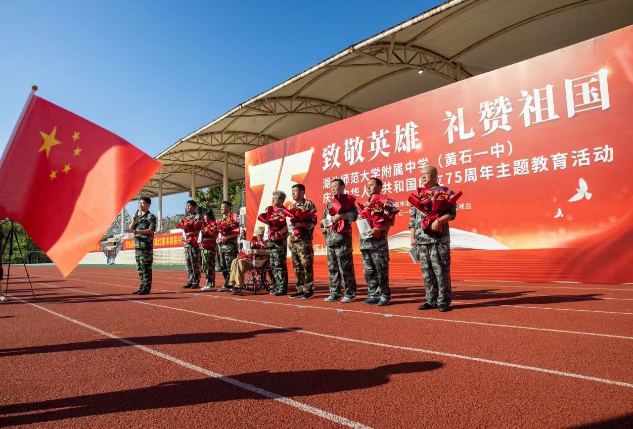 9月29日上午,國(guó)慶節(jié)臨近,“致敬英雄 禮贊祖國(guó)”——湖北師范大學(xué)附屬中學(xué)(黃石一中)慶祝中華人民共和國(guó)成立75周年活動(dòng)舉行?;顒?dòng)通過(guò)走一次紅地毯、唱一首主題歌、獻(xiàn)一束手捧花、送一本報(bào)道集等形式,致敬為共和國(guó)無(wú)私奉獻(xiàn)的英雄們。