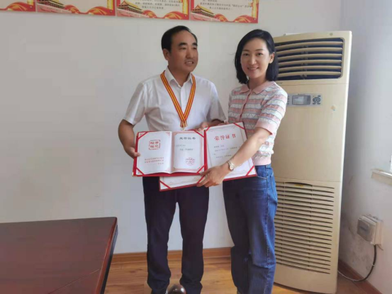 安陸市委常委、宣傳部長(zhǎng)王甜為身邊好人“荊楚楷?!编u寬橋頒發(fā)證書(shū)