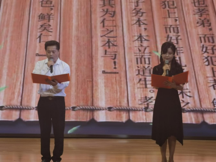 活動在莊嚴而熱烈的氛圍中拉開序幕,市委宣傳部副部長范錫建首先發(fā)表致辭。致辭結(jié)束后,一系列豐富多彩的文藝節(jié)目輪番上演,令人目不暇接。女聲獨唱《芝蘭》、舞蹈《祭拜曲舞》、詩朗誦《孔子:智慧之光》、情景劇《傳承》、集體誦讀《對話論語》等節(jié)目以各自獨特的藝術表現(xiàn)形式,頌揚了孔子的儒家思想與人格魅力,展現(xiàn)了中華文化的博大精深。