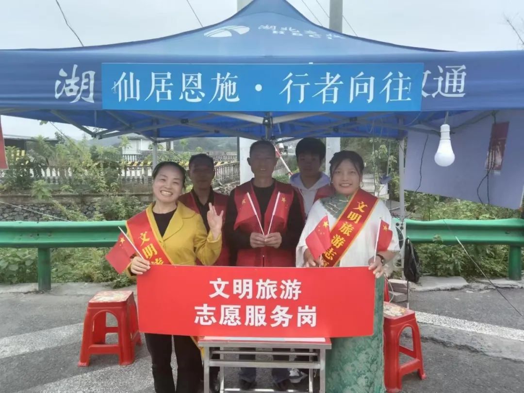 以志愿服務(wù)為引領(lǐng),多層次、多舉措營(yíng)造出文明、和諧的旅游環(huán)境。全市在高速路口、火車站出口、機(jī)場(chǎng)出口大廳、鴨松溪等地共設(shè)置7個(gè)文明旅游志愿服務(wù)崗?!凹t馬甲”志愿者為來(lái)恩游客提供線路指引、景區(qū)動(dòng)態(tài)、交通安全、餐飲住宿等旅游咨詢服務(wù)。同時(shí),各轄區(qū)鄉(xiāng)鎮(zhèn)(中心)、景區(qū)增設(shè)志愿服務(wù)崗,以禮貌、耐心、溫情的暖心服務(wù),給游客提供了良好的旅游體驗(yàn),充分展示恩施旅游的良好形象。