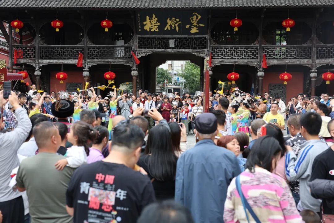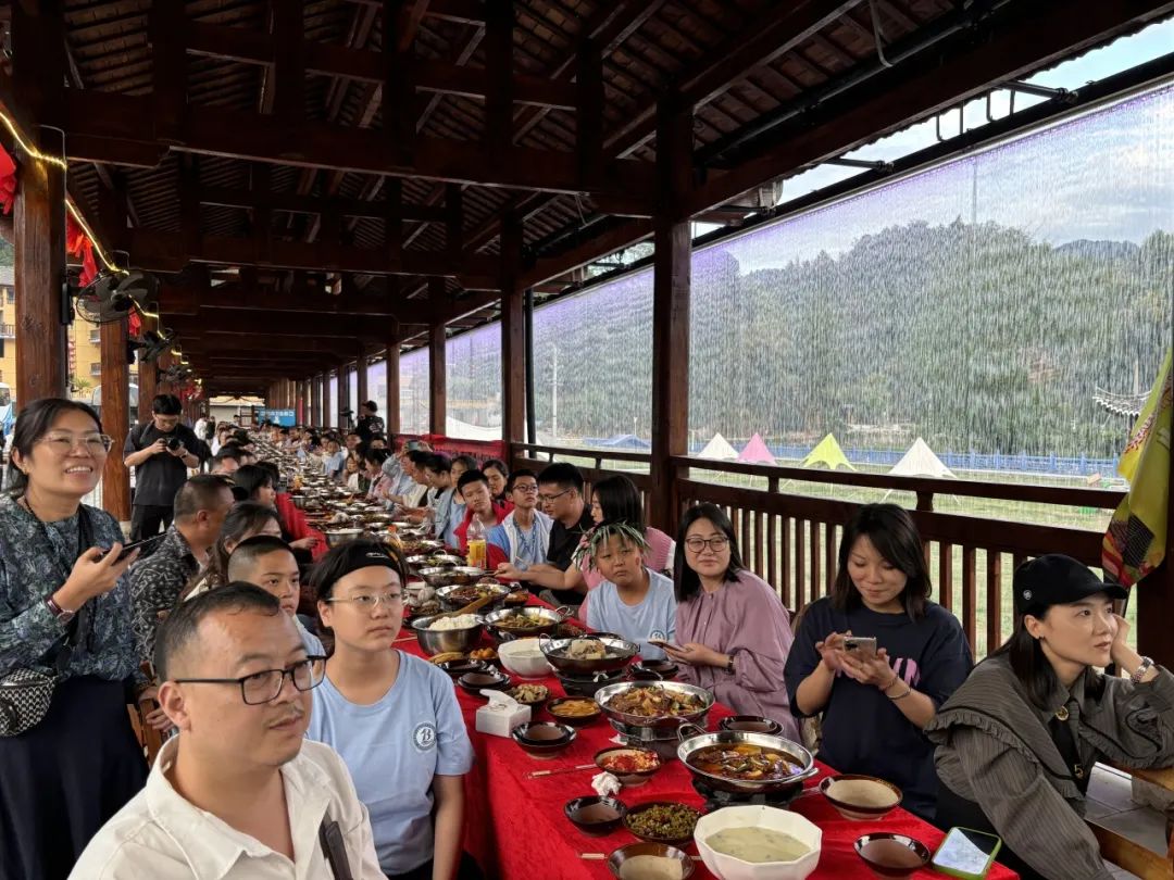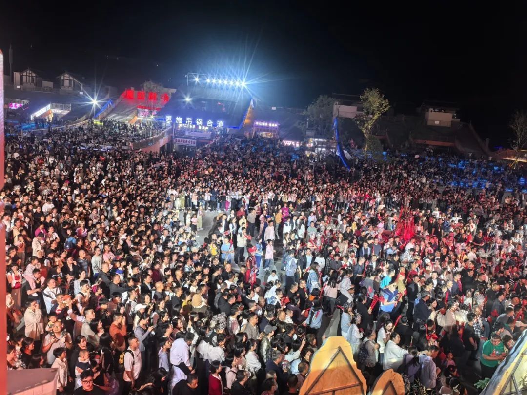 恩施女兒城景區(qū)上演著“人從眾”模式。國(guó)慶專題街區(qū)快閃活動(dòng)、“篝火晚會(huì)”“趕場(chǎng)相親女兒會(huì)”實(shí)景演出,來(lái)自五湖四海的游客共同感受恩施的熱情與豪邁。