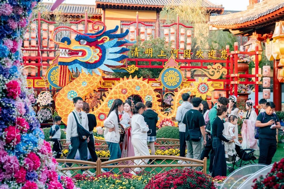 開(kāi)封清明上河園景區(qū)“以花為媒”,
