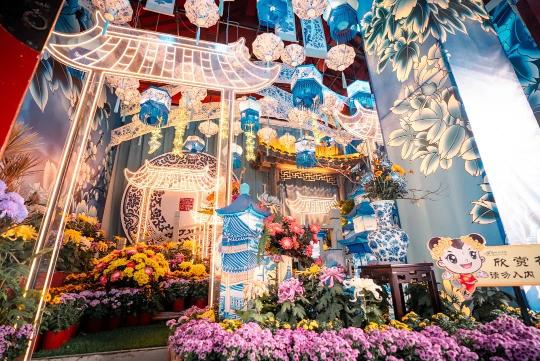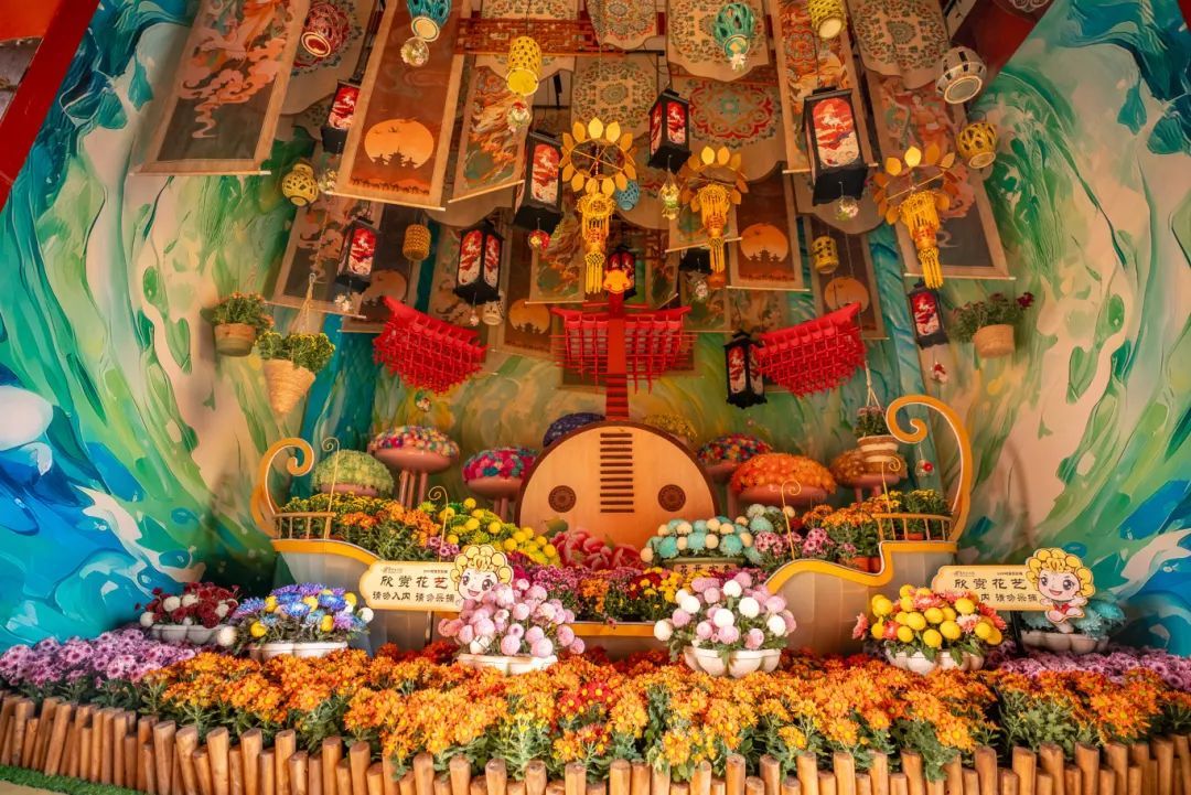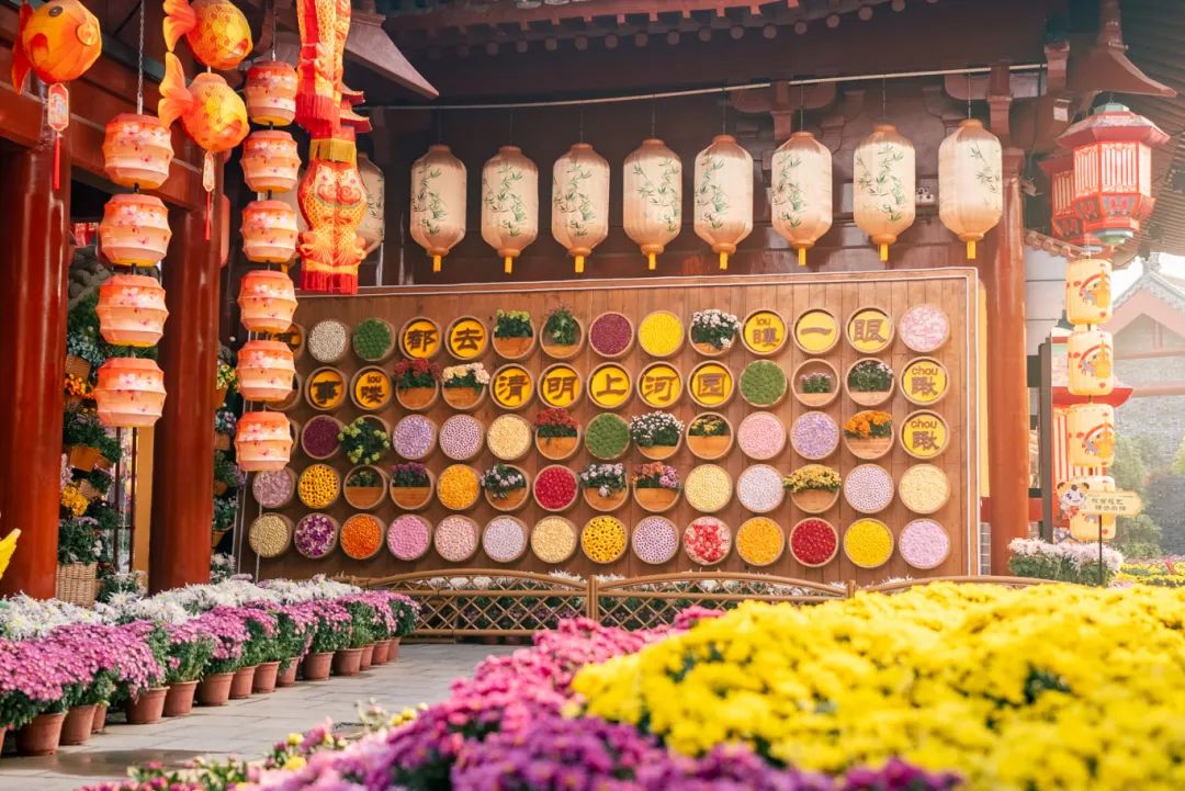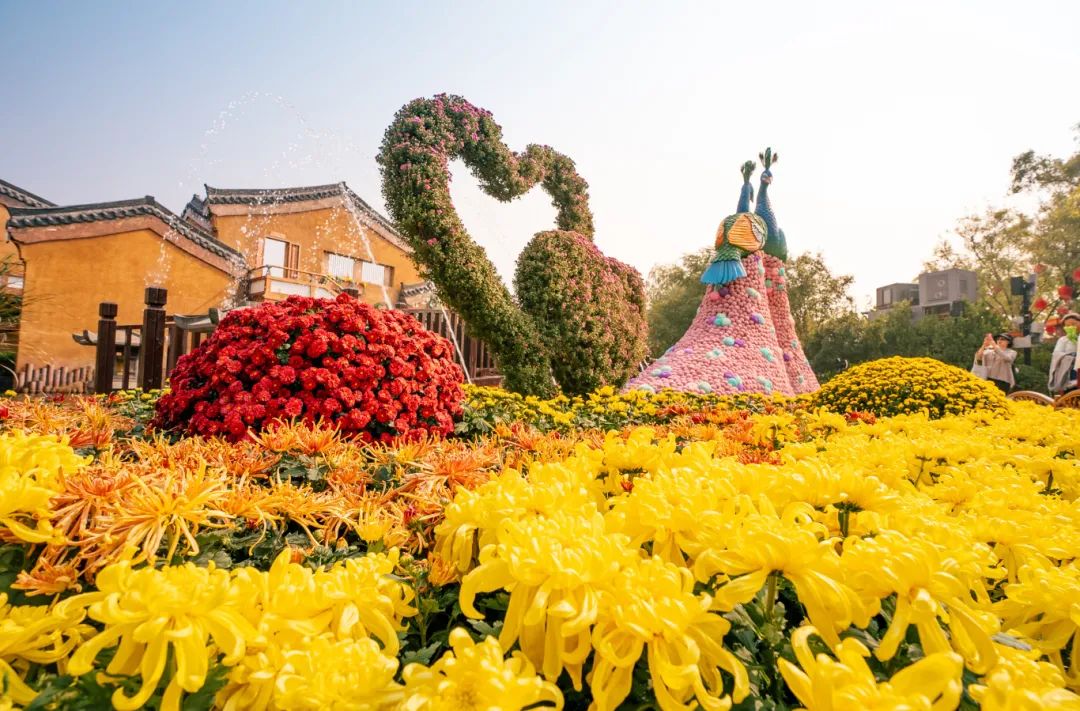 用數(shù)百萬(wàn)株精品菊花,國(guó)潮風(fēng)范的菊花造型,