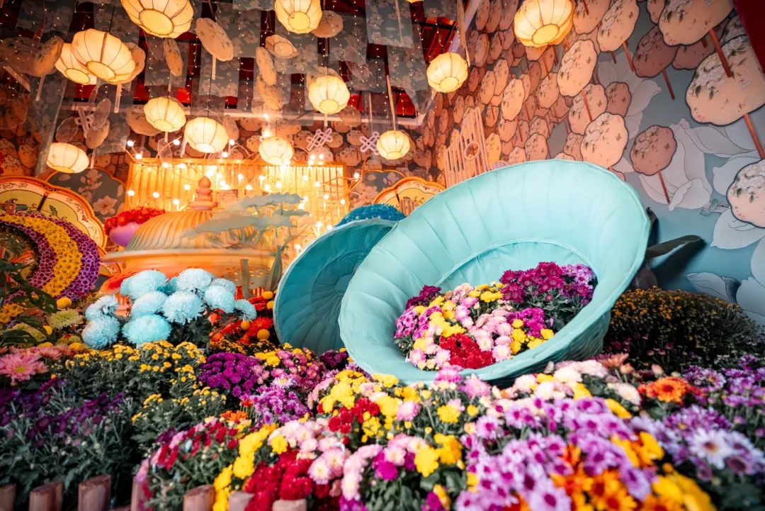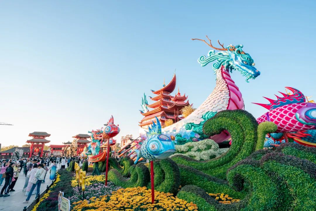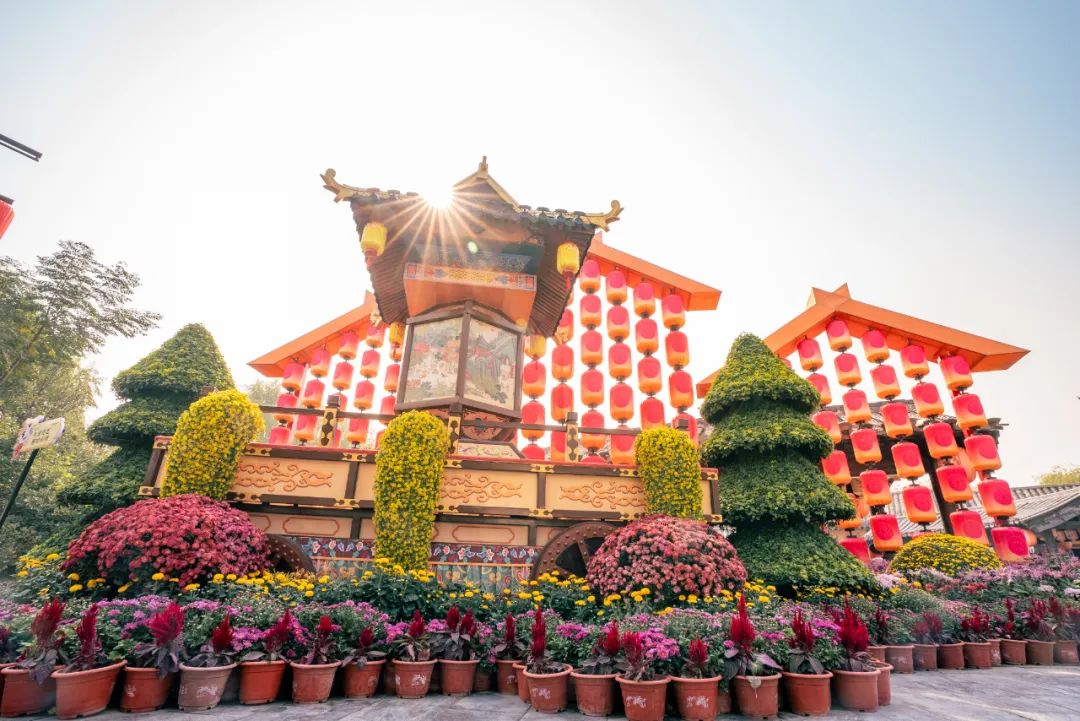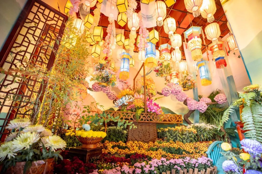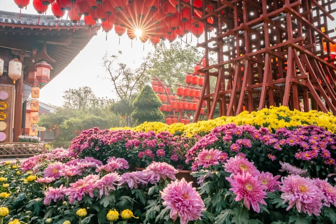 用數(shù)百萬(wàn)株精品菊花,國(guó)潮風(fēng)范的菊花造型,