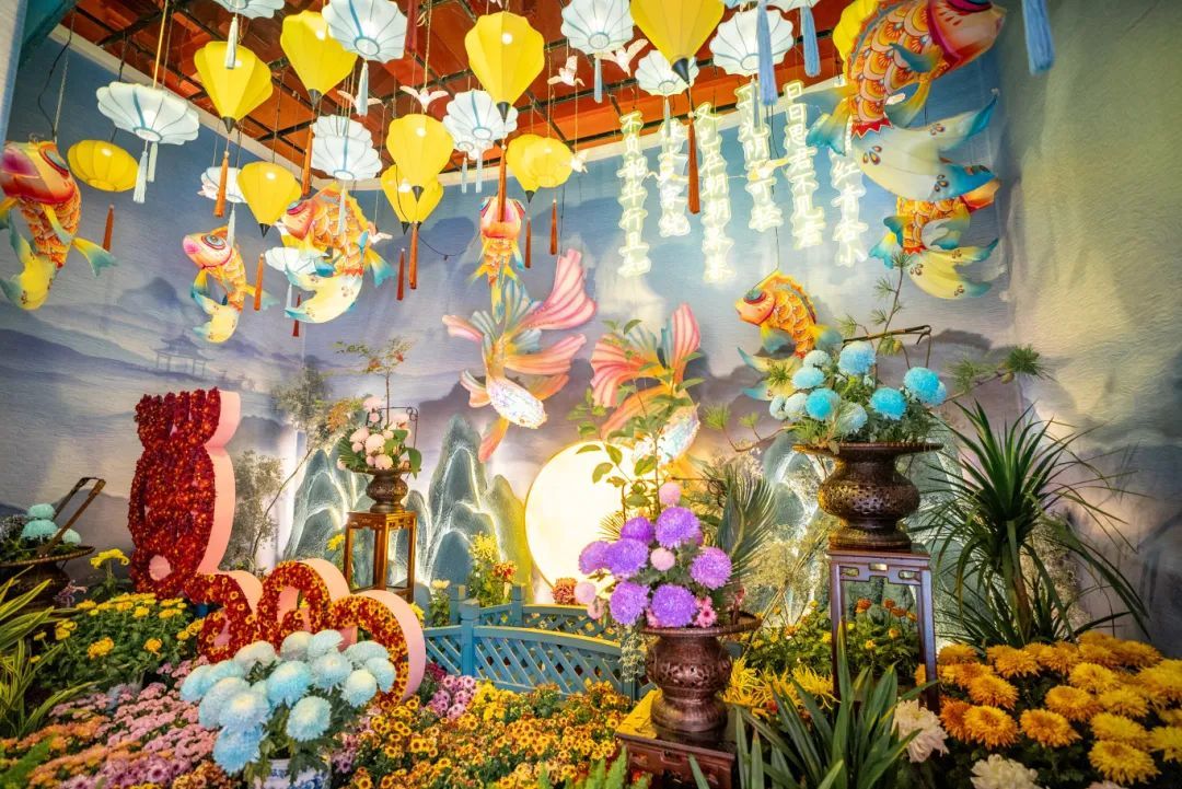 精致典雅的魚燈與芬芳璀璨的菊花,在吉祥如意的寓意中展現(xiàn)出別樣美感,氛圍十足,豐富的場(chǎng)景讓您觀展后更能感受到菊花盛宴的魅力。