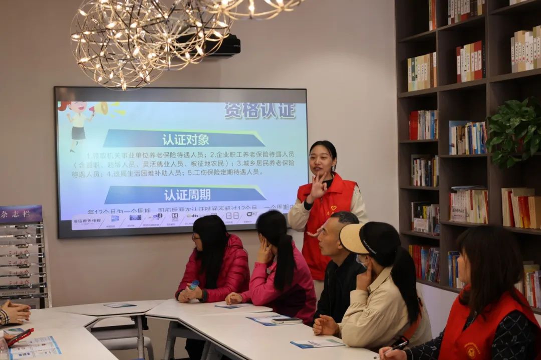人社工作人員進(jìn)社區(qū)為居民做資格認(rèn)證相關(guān)知識(shí)講座