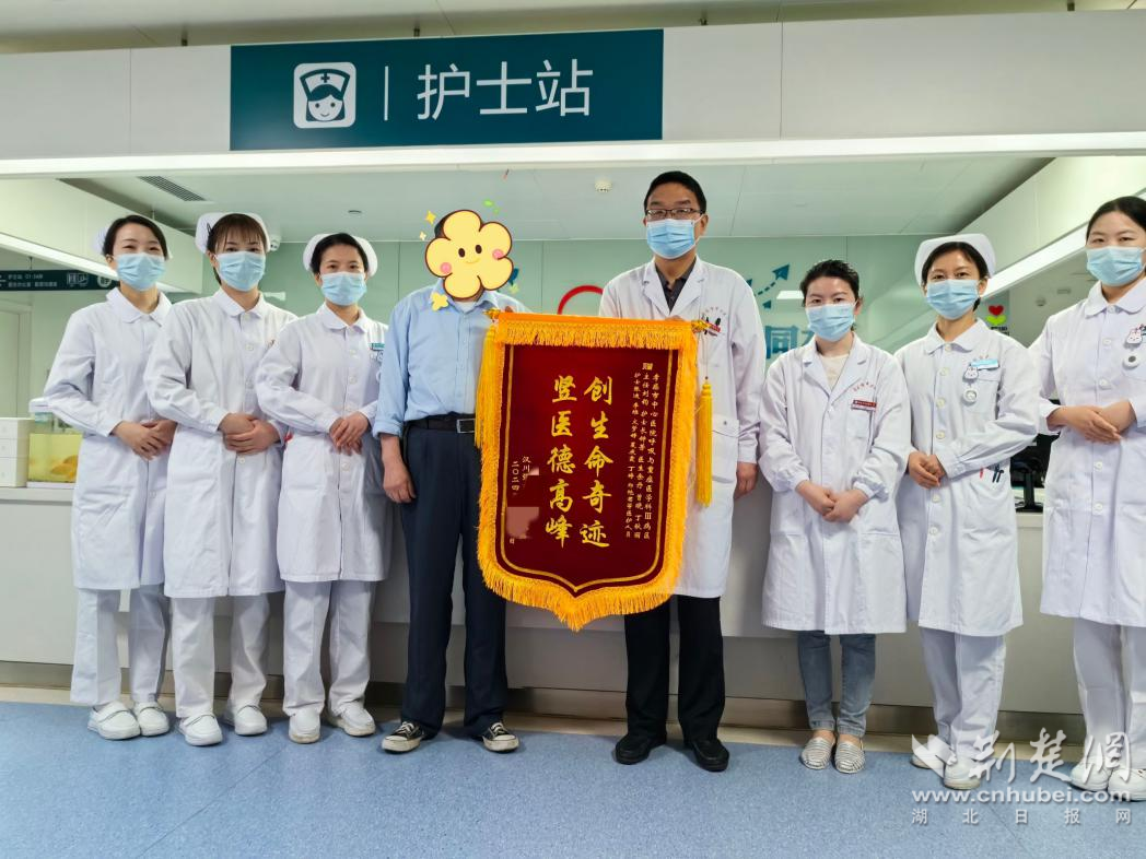 出院當(dāng)天,李爺爺特意將一面繡有“豎醫(yī)德高峰,創(chuàng)生命奇跡”的錦旗贈予醫(yī)務(wù)人員,以此表達(dá)自己和家人最誠摯的謝意。