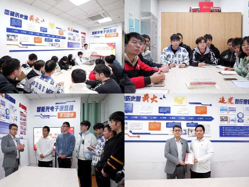 11月18日,支部書記胡臨風(fēng)在鑒湖主樓608課題組學(xué)習(xí)園區(qū)主持理論學(xué)習(xí)活動,深入解讀黨的二十大和二十屆二中、三中全會關(guān)于教育科技人才工作的重要部署。活動邀請李政穎教授講授“回顧光纖發(fā)展史,追光鑄魂育新人”的專題知識,李教授描繪了光纖技術(shù)的發(fā)展歷程,并指引了黨支部的未來發(fā)展方向——黨建與科研同向同行,讓黨支部的堡壘作用和黨員的先鋒模范作用在科研一線充分發(fā)揮。李教授還向支部贈予《我是共產(chǎn)黨員——科學(xué)報國帶頭人》等書籍,鼓勵黨員們投身科研一線,矢志奮斗報國。