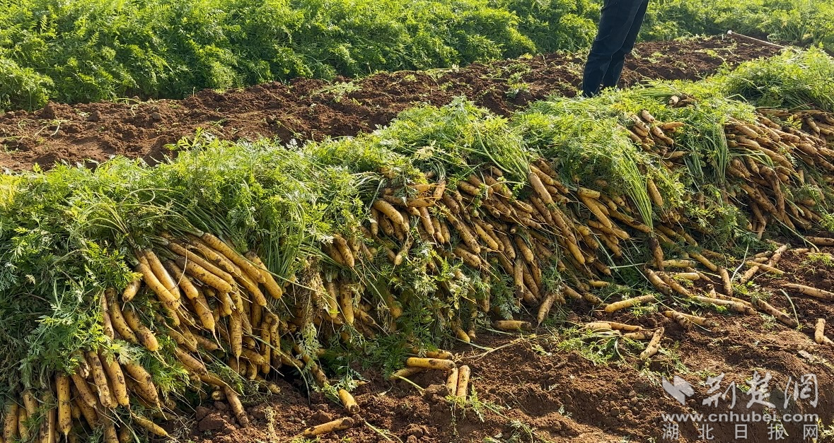 荊楚網(wǎng)(湖北日報網(wǎng))訊(通訊員 龔霄雯 楊佩瑾)走進應(yīng)城市城中街道周陳村“黃玉”胡蘿卜地,村民們將一個個大小均勻、色彩鮮艷的胡蘿卜從地里拔出、挑揀、去纓、裝桶,運往合作社進行機械化清洗裝袋,田間一派熱火朝天豐收景象。