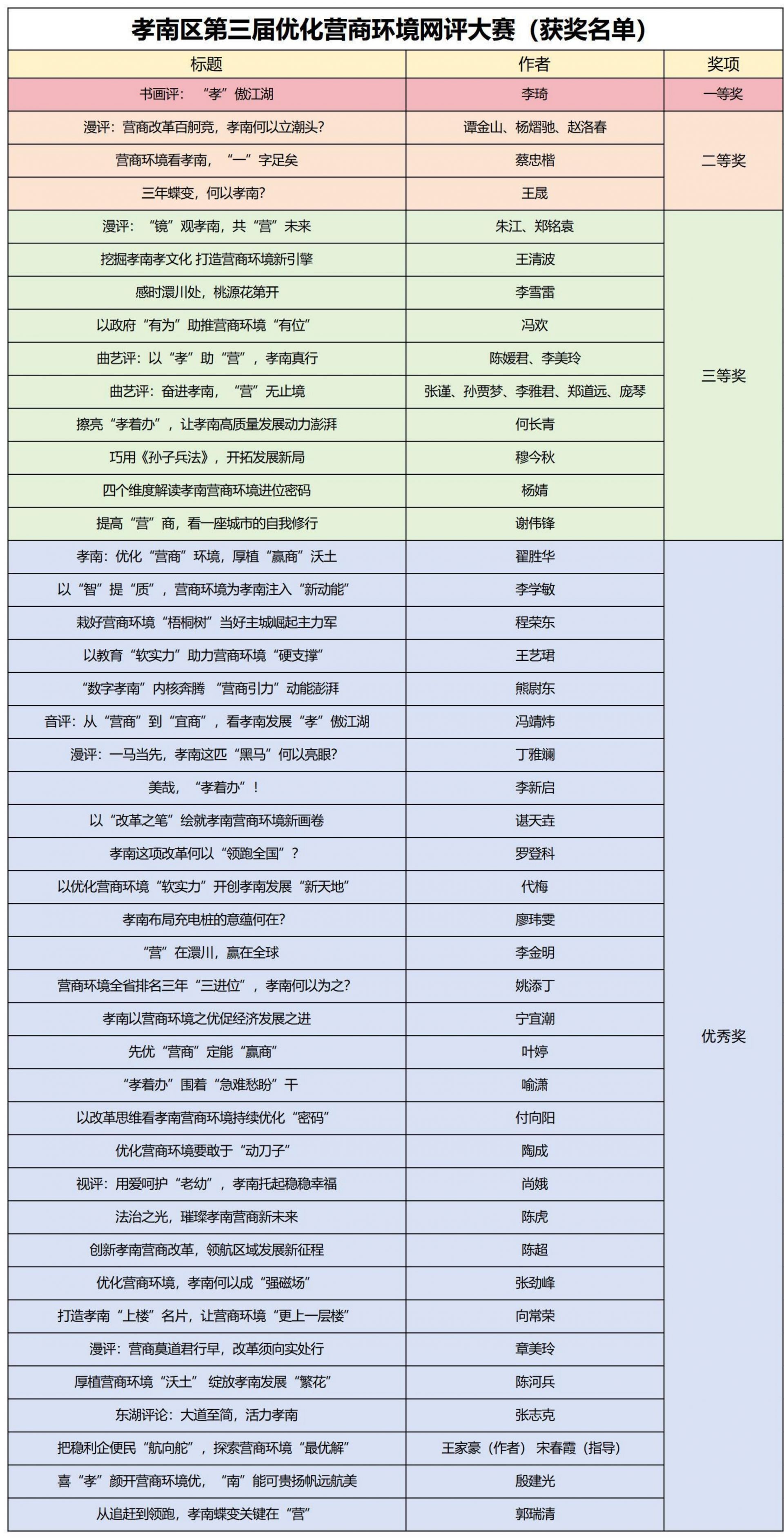 荊楚網(wǎng)(湖北日報網(wǎng))訊(記者黃菲)12月17日,孝南區(qū)第三屆主題網(wǎng)絡(luò)評論大賽結(jié)果出爐,44件作品分別獲得一、二、三等獎和優(yōu)秀獎。
