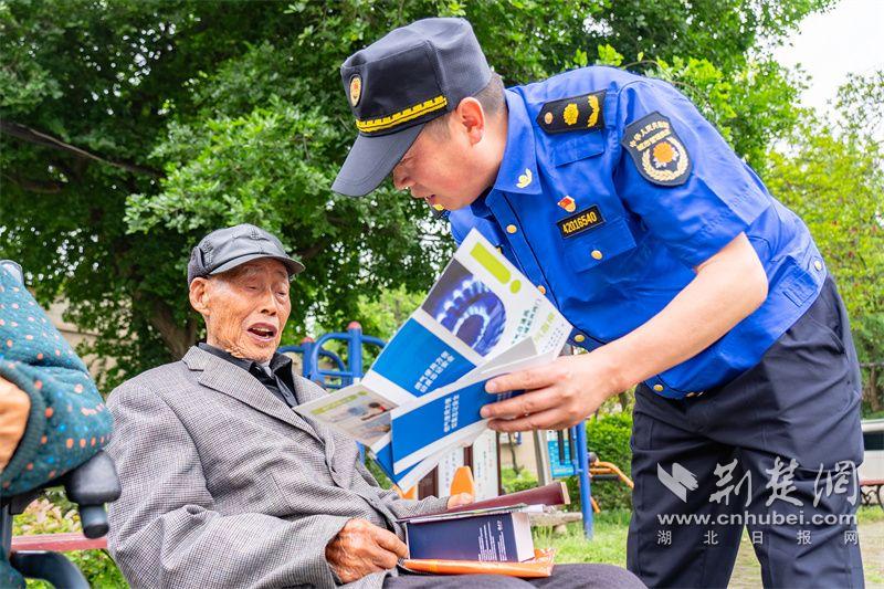 城管部門在磨山小區(qū)開展燃?xì)獍踩麄?,介紹“瓶改管”工作情況。通訊員供圖