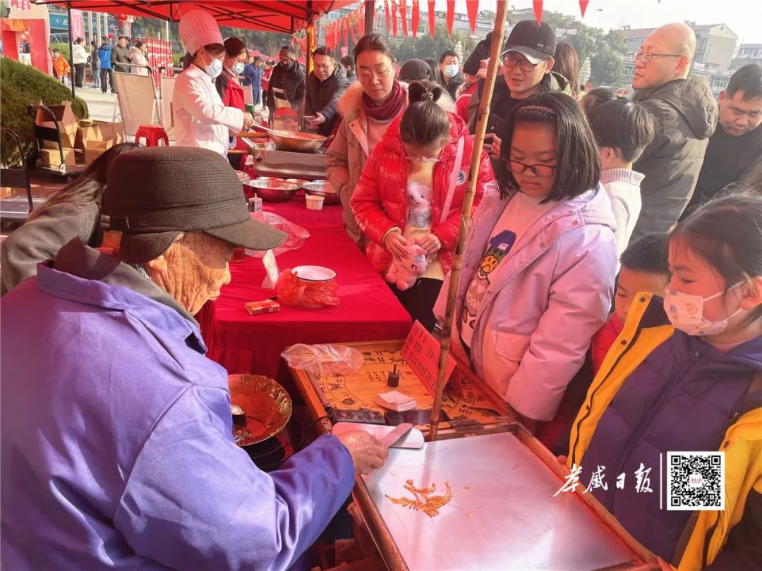 孝南轉糖人展位前,市民排起長隊。“我兒子喜歡吃。今天上午孩子同學來過,說活動非常熱鬧,我也帶孩子來看看,活動組織得真不錯。”家住文昌閣附近的張女士說,自己今天特地帶孩子趕來,每個展位都轉了,收獲滿滿。