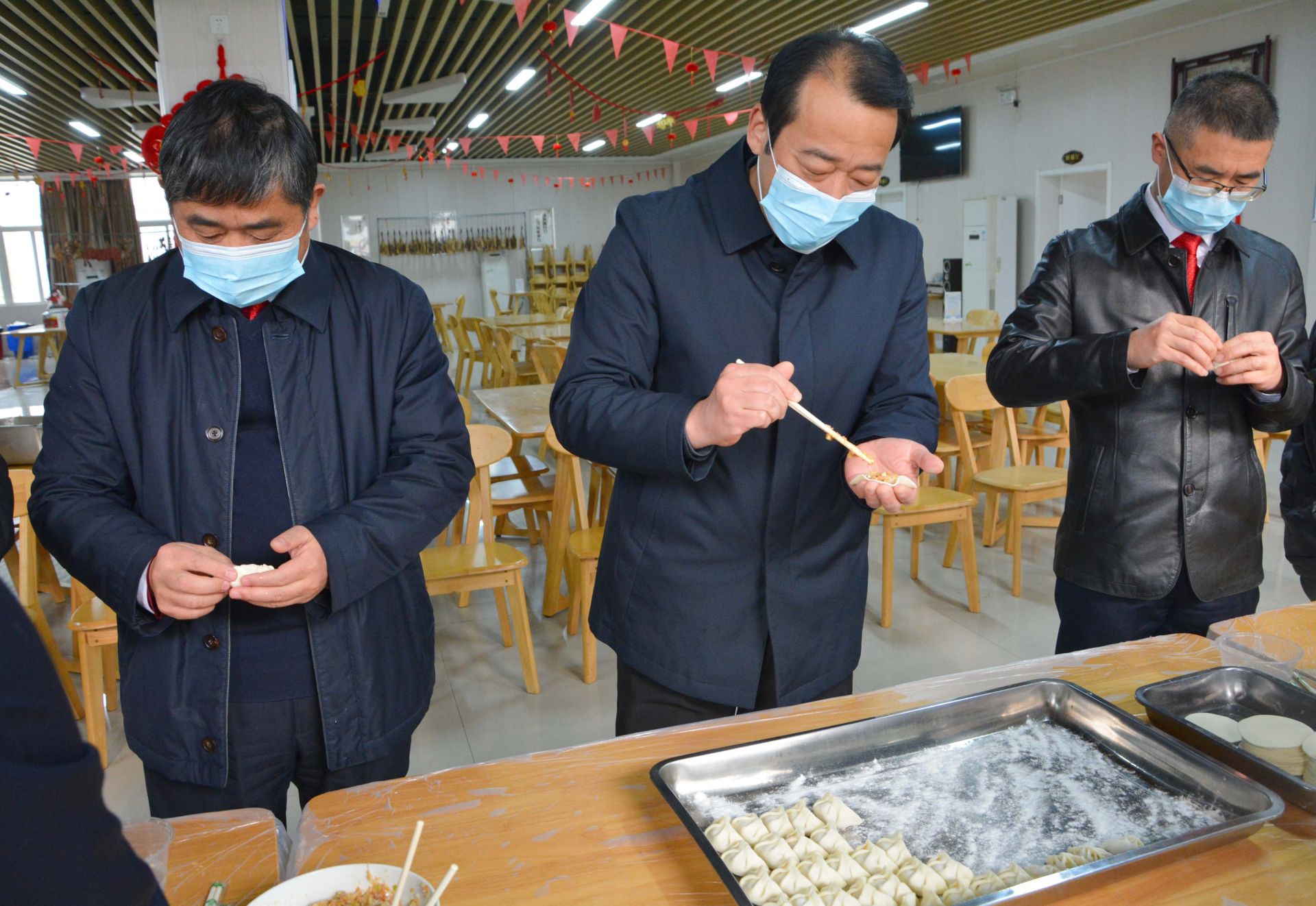 活動(dòng)現(xiàn)場,大家圍著桌子,紛紛化身“廚房能手”,有條不紊地進(jìn)行著每一個(gè)步驟,只見一雙雙巧手上下翻飛,薄薄的餃子皮逐一被填餡、塑形。不一會(huì),一盤盤形態(tài)各異、飽滿誘人的餃子便擺滿了桌面。隨后,食堂把煮好的熱氣騰騰的餃子及時(shí)送到每個(gè)服務(wù)對象的手中。