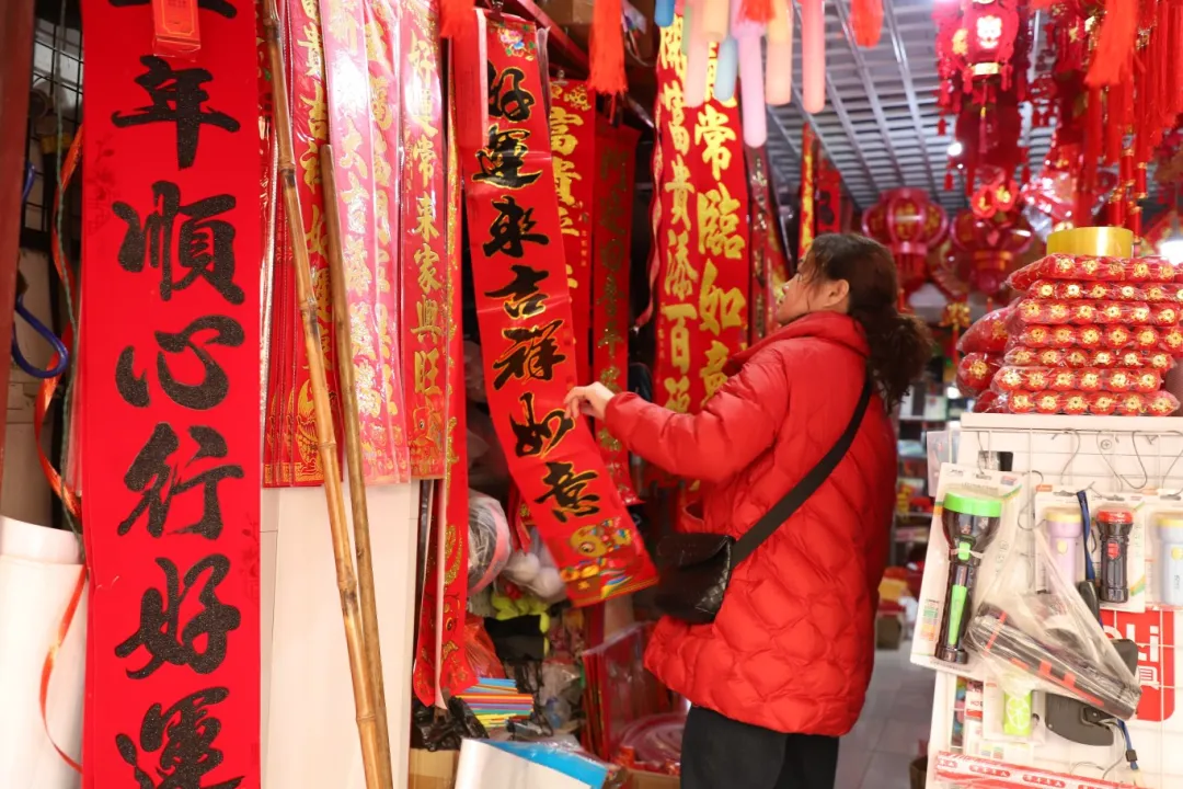 “今天我主要來買對(duì)聯(lián)和紅燈籠?!笔忻窈空f,過年,就是要把家里裝飾得喜慶一些,才有年味。
