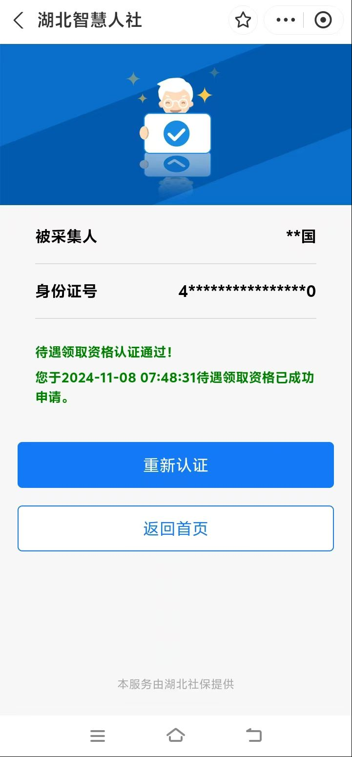 但需要提醒的是,從辦理待遇領(lǐng)取手續(xù)的次月起開始享受城鄉(xiāng)居保待遇,應(yīng)盡早辦理享待手續(xù)。開始領(lǐng)待后每年需進行待遇資格認證,12個月為一個認證周期,參保人員可在上次認證后的12個月內(nèi)任意選擇時間進行認證,未及時認證的社保經(jīng)辦機構(gòu)將暫停待遇發(fā)放,認證完成后進行待遇補發(fā)。參保人員可通過“湖北12333”微信公眾號和“湖北智慧人社”支付寶小程序,線上自行操作認證,也可到村(社區(qū))協(xié)助認證或人社服務(wù)窗口線下人工認證。
