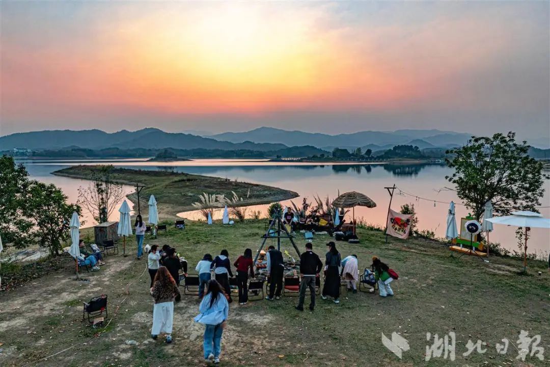 沿黃陂木蘭大道一路北行,“小千島湖”梅店水庫(kù)旁,藏著武漢的新晉網(wǎng)紅打卡地——山島里營(yíng)地。
