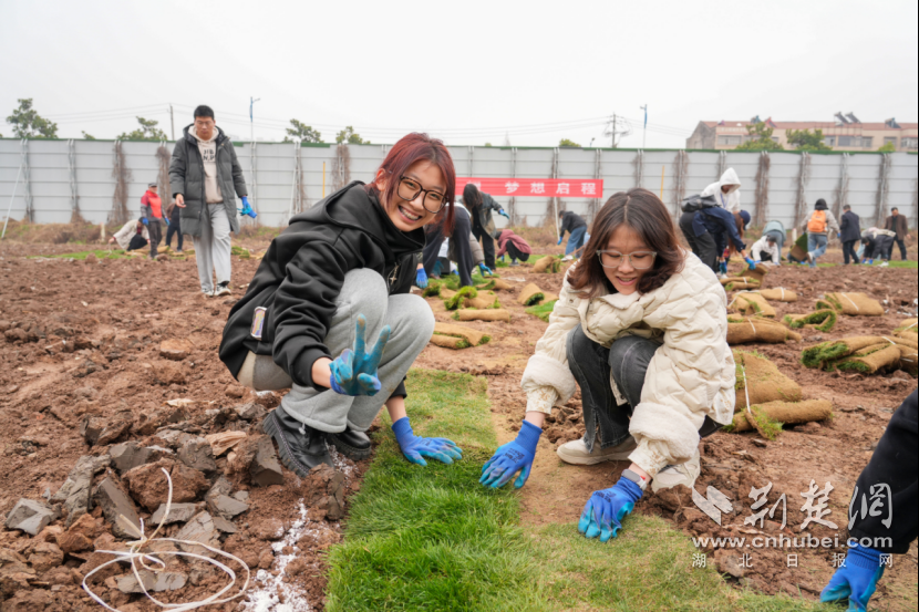 荊楚網(wǎng)(湖北日報網(wǎng))訊 (通訊員 朱喬丹 攝影 談宇鋒 梁鵬 王磊 陳沖)春風(fēng)拂綠,萬物競發(fā)。3月12日是第47個植樹節(jié),武漢生物工程學(xué)院響應(yīng)“履行植樹義務(wù),共建美麗中國”號召,在大健康學(xué)產(chǎn)研基地的茶園和三友園、四季園等多地開展植樹綠化活動。校領(lǐng)導(dǎo)、校“兩委”成員帶頭參與,200余名師生志愿者共同揮鍬培土澆水,種下茶樹、櫻花、梅花、蠟梅等多種苗木七千余株,將生態(tài)理念融入勞動實(shí)踐,為魅力校園注入新活力。