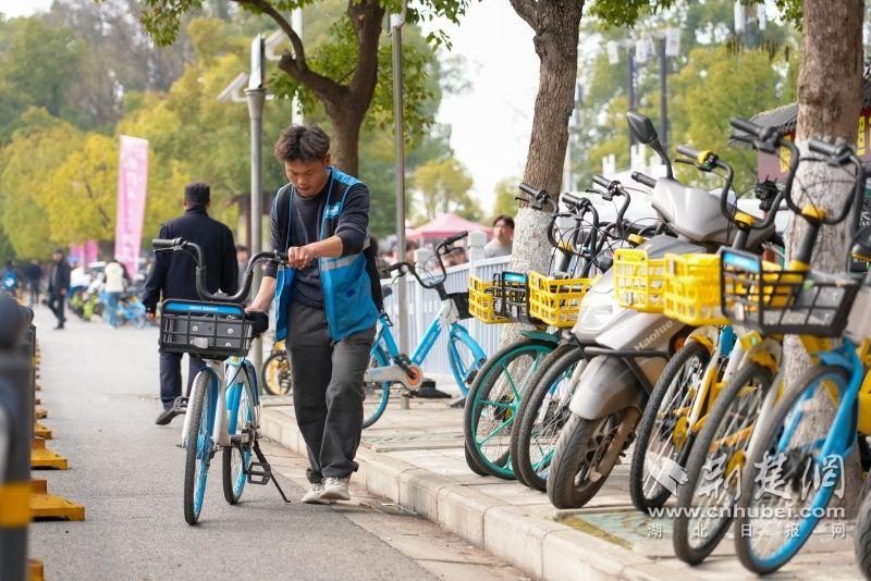 前期,該區(qū)城管積極與文旅、交管和磨山景區(qū)等職能部門協(xié)調(diào)溝通,在新建的攬翠停車場周邊人行道及沿線輔道上,臨時設置單車停放點,為景區(qū)旅游旺季擴容減壓,破解單車潮汐問題。