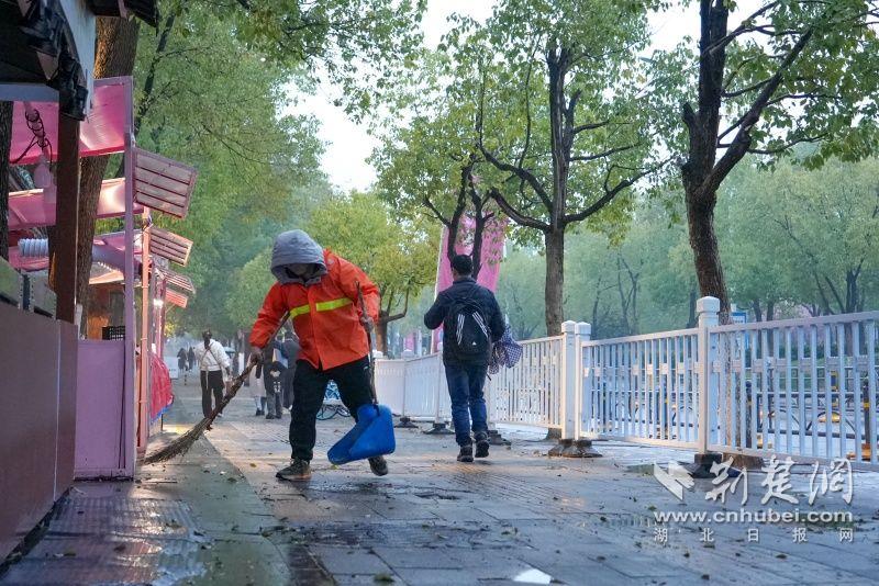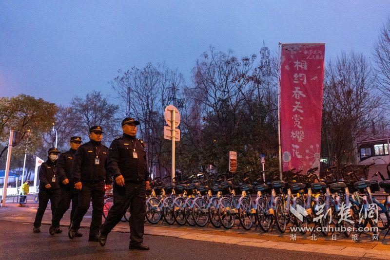 東湖風景區(qū)城管執(zhí)法局一中隊負責人介紹,為了加強櫻園周邊保障力量,在梅花季結束后無縫切換櫻花季保障模式,除日常負責櫻園片區(qū)的7人小組外,中隊從其他片區(qū)抽調(diào)10名隊員,在每日中午和晚上支援,確保全天候不斷檔護航景區(qū)市容秩序?!霸绨送硎闪顺B(tài),每天等到櫻園閉園、游客散盡后,才組織收班?!?/p>
