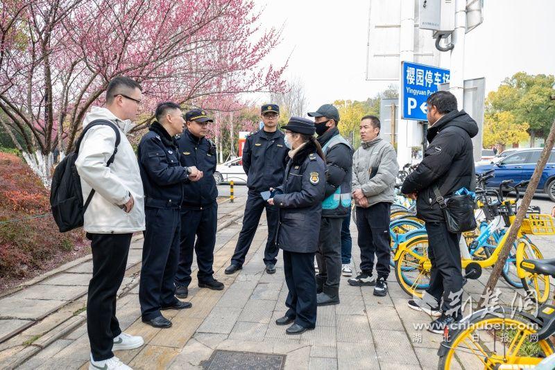 為了營造良好的賞櫻環(huán)境,更好服務市民游客,東湖風景區(qū)聚焦櫻園游客體驗和交通痛點問題,多次開展現(xiàn)場“馬路辦公”,圍繞訪梅路、植物園路、梅園東停車場周邊環(huán)境、交通秩序、共享單車等問題“問診開藥”,聯(lián)動開展集中整治。