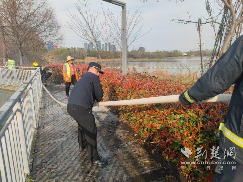 當(dāng)日下午,東湖風(fēng)景區(qū)城管執(zhí)法局四中隊隊員王建偉、宋威、劉鑫宇在九女墩附近巡查時,發(fā)現(xiàn)華僑城運(yùn)動中心南山草木集門店附近有濃煙升起。他們迅速趕到現(xiàn)場,發(fā)現(xiàn)起火點(diǎn)為門店下方野塘中的蘆葦和干草,起火原因不明。由于野塘地勢復(fù)雜,無法直接取水滅火,現(xiàn)場情況較為緊急。