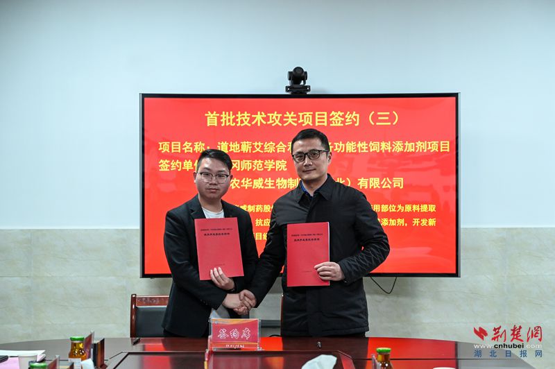 揭牌儀式上,活動(dòng)現(xiàn)場(chǎng),黃岡師范學(xué)院黨委副書(shū)記、校長(zhǎng)漆昌柱和黃岡市科技局黨組書(shū)記姜寬分別為省級(jí)重點(diǎn)實(shí)驗(yàn)室學(xué)術(shù)委員會(huì)專(zhuān)家頒發(fā)聘書(shū)。重點(diǎn)實(shí)驗(yàn)室分別與湖北衛(wèi)爾康現(xiàn)代中藥有限公司、農(nóng)華威生物制藥(湖北)有限公司等6家企業(yè)簽訂產(chǎn)業(yè)關(guān)鍵技術(shù)攻關(guān)項(xiàng)目協(xié)議。項(xiàng)目涵蓋道地藥材多個(gè)研究與開(kāi)發(fā)領(lǐng)域的技術(shù)攻關(guān),總項(xiàng)目經(jīng)費(fèi)達(dá)370萬(wàn)元。