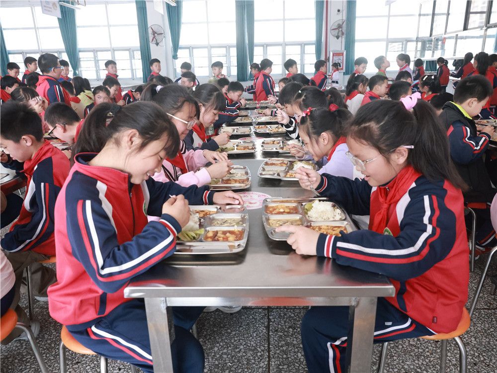 “現(xiàn)在學(xué)校的伙食確實是越來越好了,我和同學(xué)都愛吃?!薄昂⒆涌偪鋵W(xué)校飯菜香,我們也不用再奔波送飯了,真的是省心又省力?!薄撔W(xué)生和家長紛紛為“校園餐”點贊。