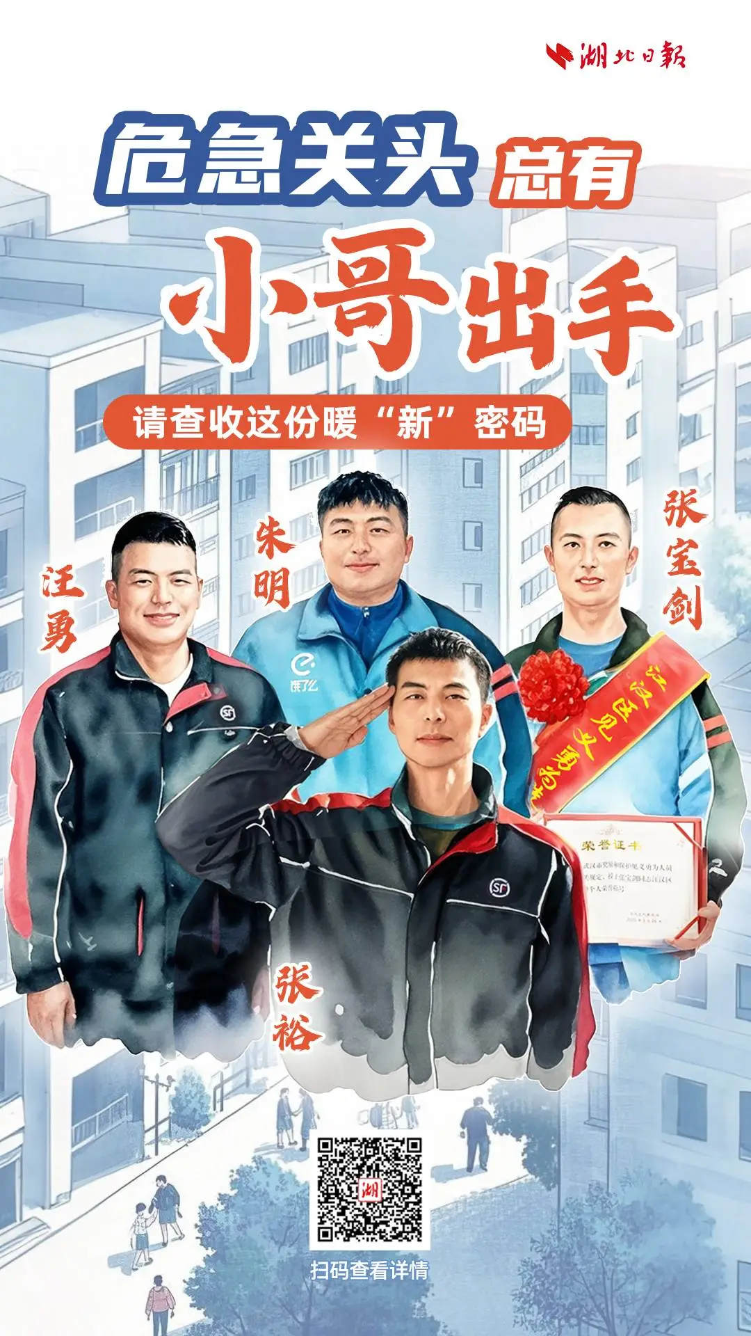 近些年來(lái),人們發(fā)現(xiàn),這個(gè)群體不僅是物流網(wǎng)絡(luò)的末梢神經(jīng),更成為群眾安危的守護(hù)者。很多人都知道這些故事:杭州外賣(mài)騎手彭清林12米高橋縱身躍江救人,溫州快遞員羅天友救人之后悄然離開(kāi),無(wú)錫李鯤鵬憑借職業(yè)敏感識(shí)破詐騙包裹。很多人也熟悉武漢的這些名字:“最美快遞員”汪勇,“火場(chǎng)英雄”順豐小哥張?jiān)#瑤ьI(lǐng)居民撲火的騎手朱明,用攜帶的自動(dòng)體外除顫器開(kāi)啟緊急救人的張寶劍。