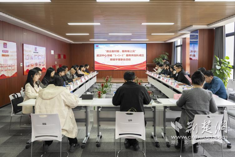 3年前,武漢中心書城在菱角湖畔拔地而起,街道第一時間選派了2名業(yè)務(wù)骨干駐點(diǎn)書城招商引商,派駐4名經(jīng)驗豐富的專職黨建指導(dǎo)員做好聯(lián)絡(luò)服務(wù)、黨建指導(dǎo)、需求收集等工作。隨著樓宇企業(yè)不斷發(fā)展,需求愈發(fā)多元化,街道打破地域、部門界限,強(qiáng)化樓宇服務(wù)力量,組建了這支由區(qū)經(jīng)科局干部、街道干部、社區(qū)黨員組成的“1+1+1”突擊隊。